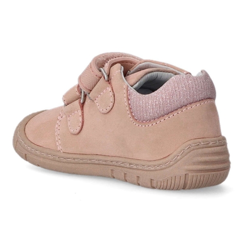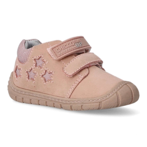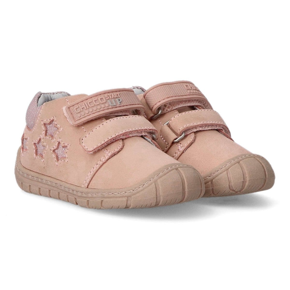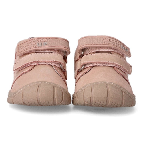 Zapato abotinado de niña con cierre de velcro. Fabricado en piel con suela de goma. Color rosa-brillo. Modelo que estimula el pie de los niños, transpirable, cómodo, ligero y flexible. Equipado con plantilla Impronta Naturale Chicco.