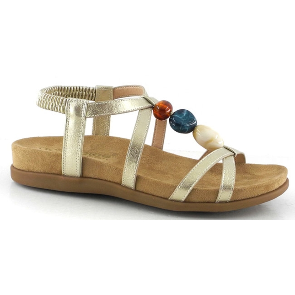 Sandalia de la marca Amarpies para mujer. Fabricada en tonos metalizados con goma elástica en el talón para una mayor sujección y comodidad. Color platino