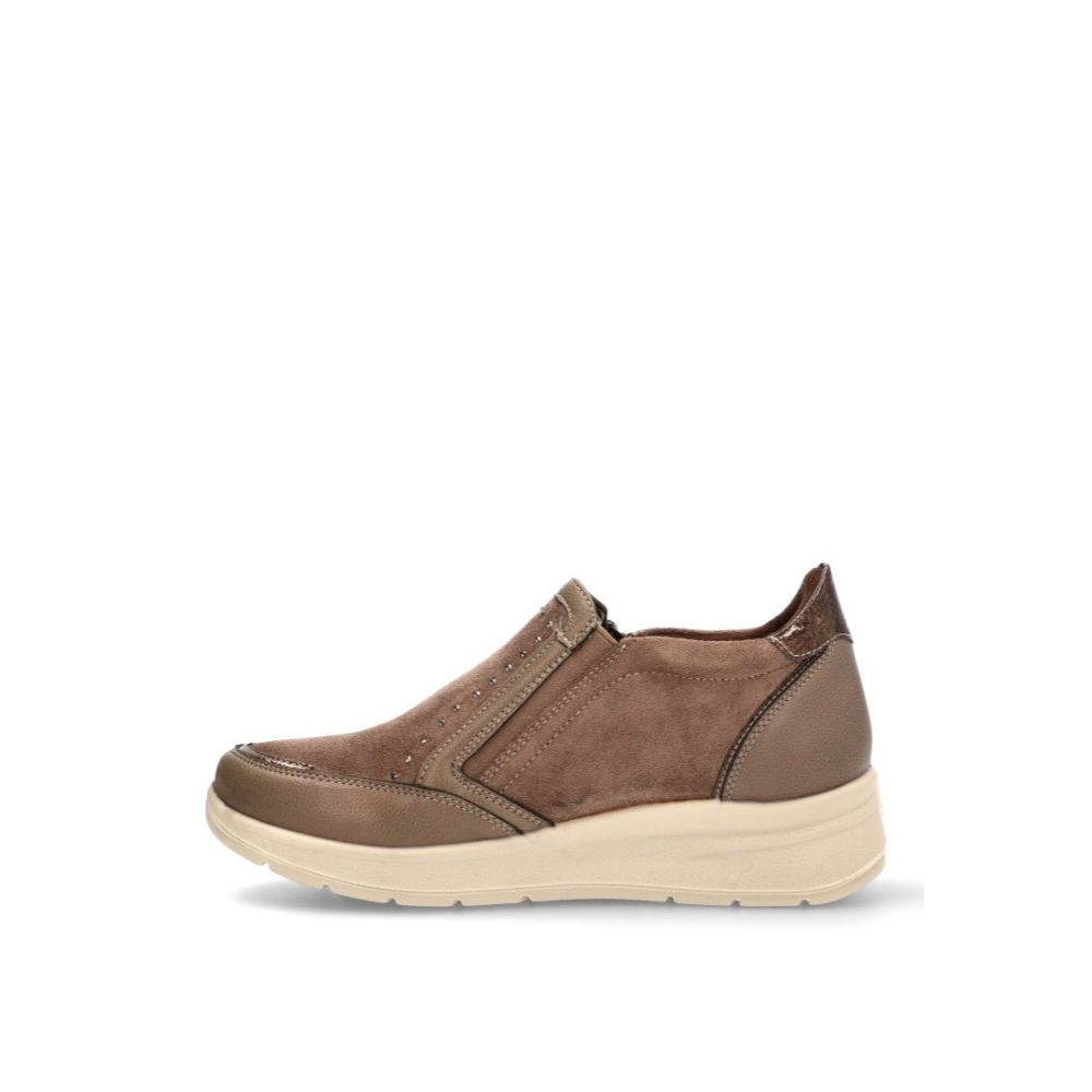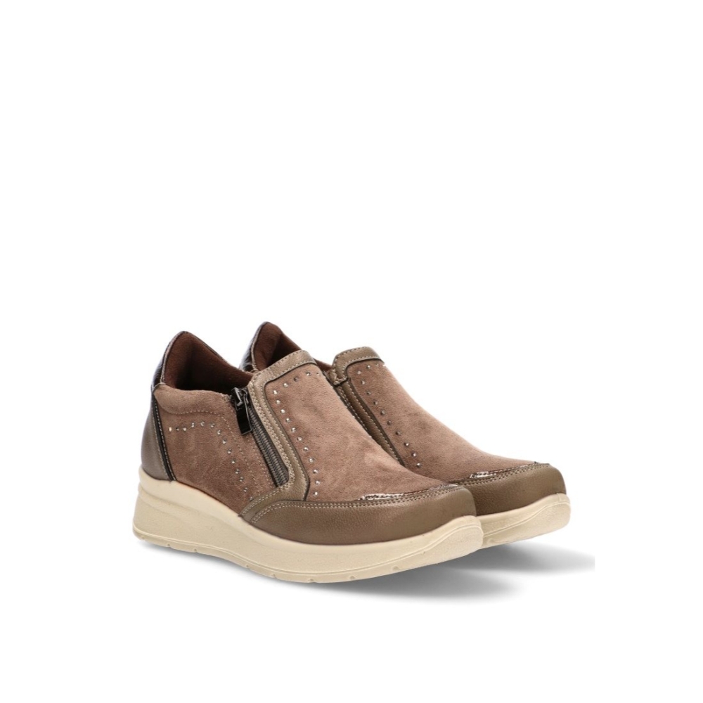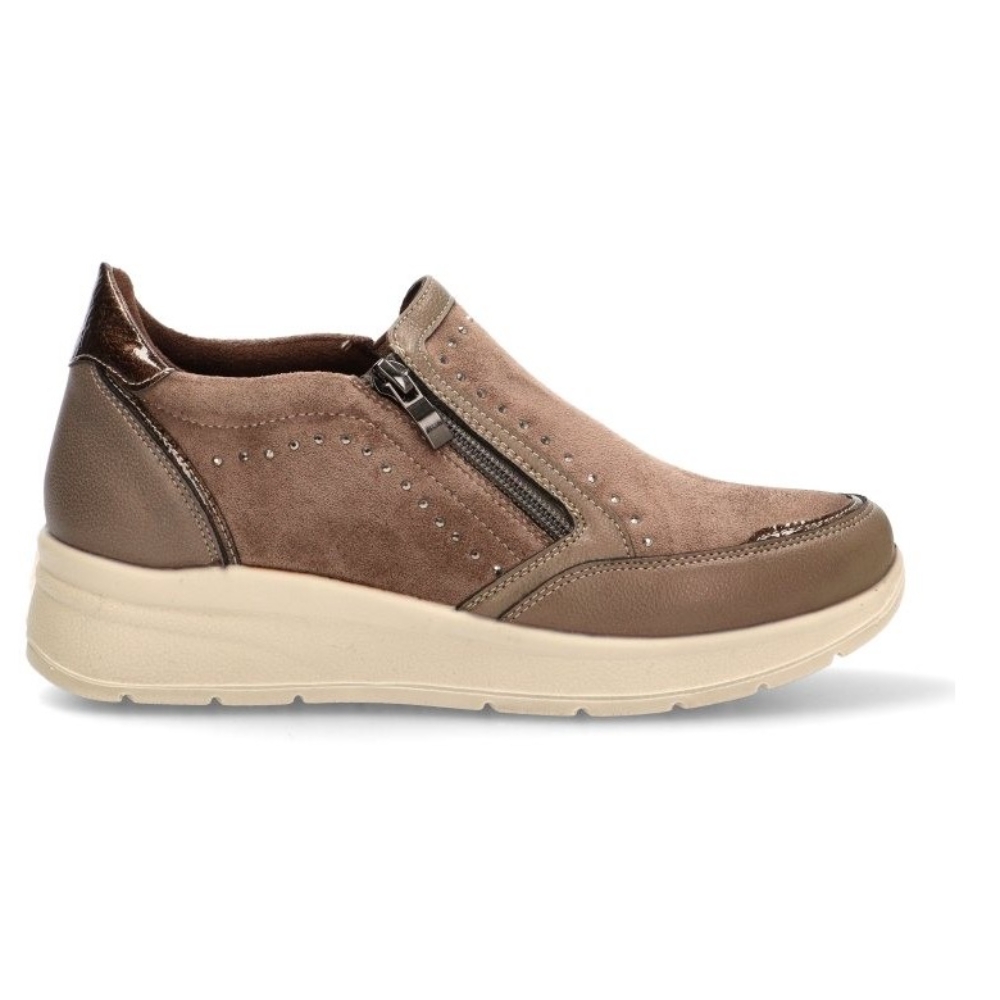 Adéntrate al mundo de la comodidad con los Zapatos con cuña AMARPIES atl29351 en color taupe. Diseñados para la mujer moderna, estos zapatos casuales son un imprescindible en tu armario. El tipo de cierre tiene una cremallera para asegurar un ajuste perfecto, mientras que su composición de polipiel y textil en el material exterior y textil en el interior proporciona una cascada de confort. La suela sintética con cuña aporta un plus de altura sin renunciar a la comodidad. Combina estos zapatos con cuña estilo Cómodo con tus outfits favoritos, y camina con estilo y confianza, sabiendo que tus pies están bien cuidados con AMARPIES.
