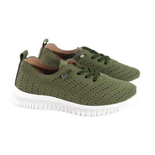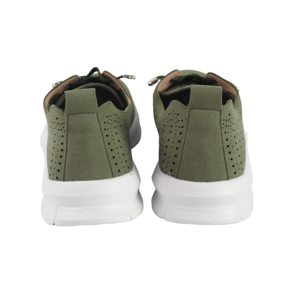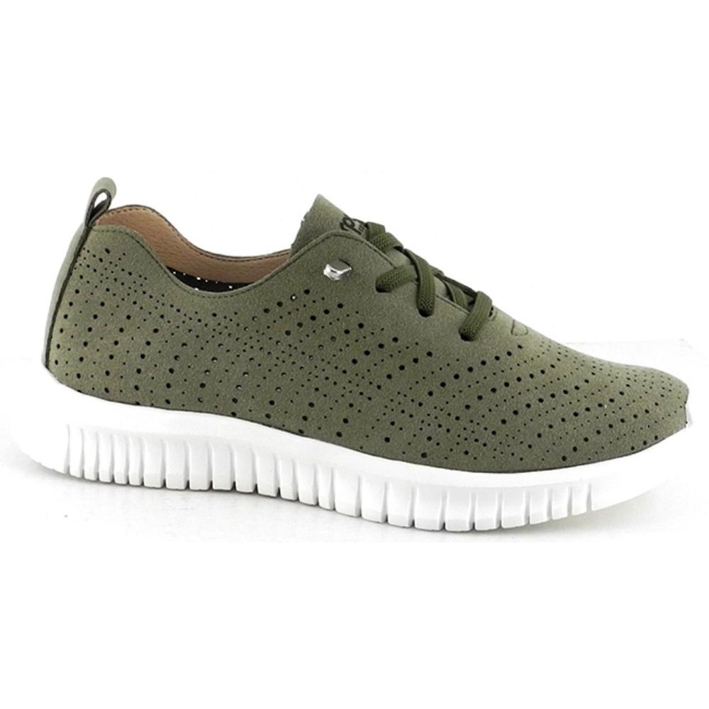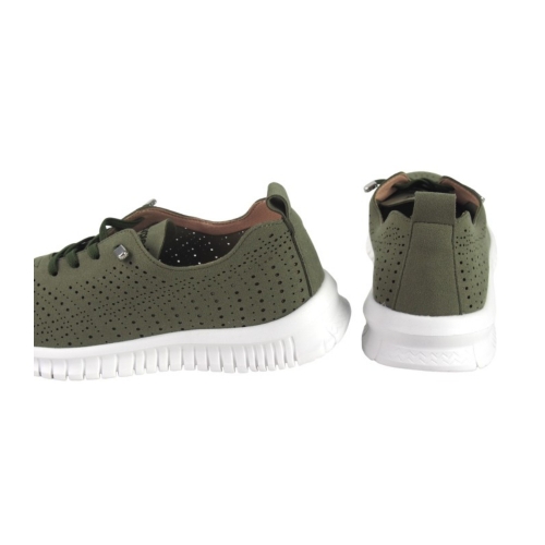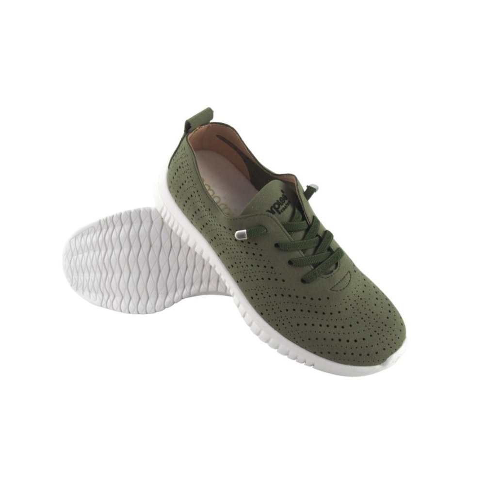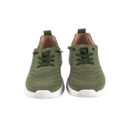Zapato tipo deportivo de la marca Amarpies para mujer. Fabricado en material ligero de gran calidad con gomas elásticas. Color kaki