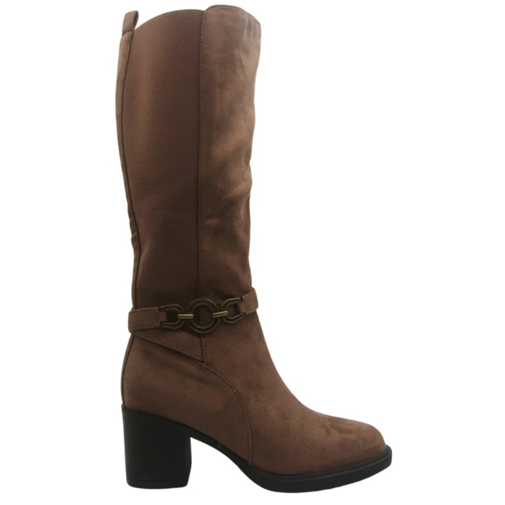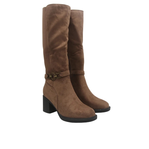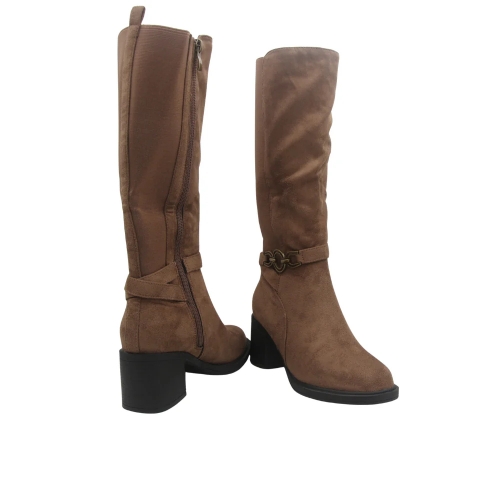 Bota alta con tacón de la marca Balleri para mujer. Fabricada en material sintético con cremallera lateral. Color taupe
