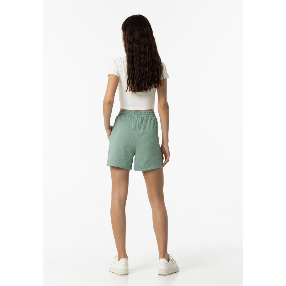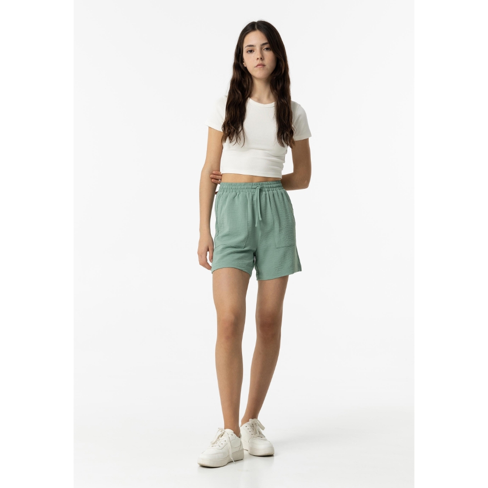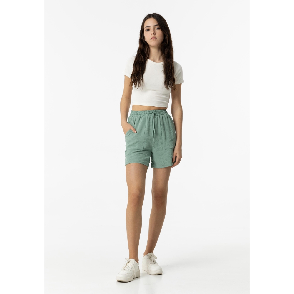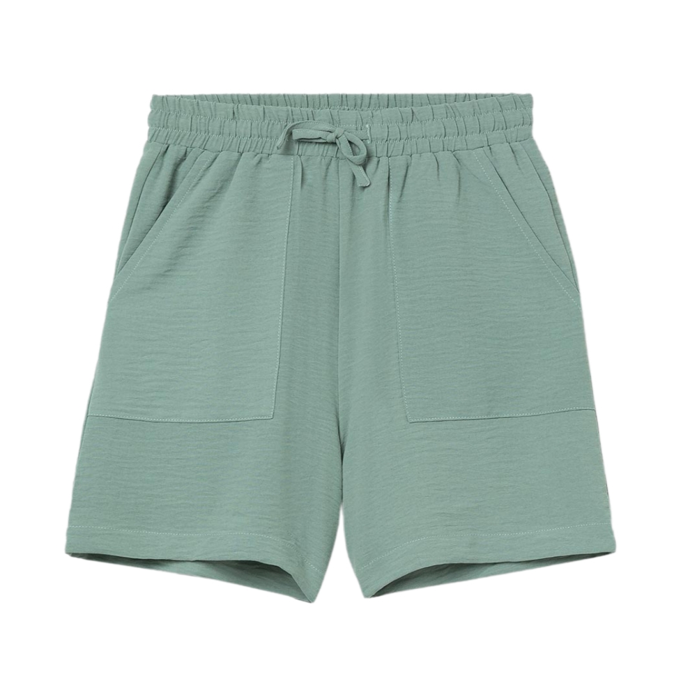 Bermuda de tiro alto con cinturilla elástica y cordón ajustable. Bolsillos laterales.