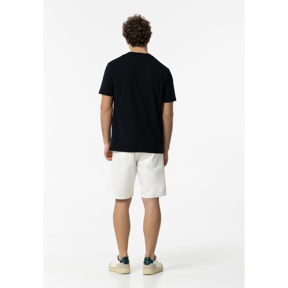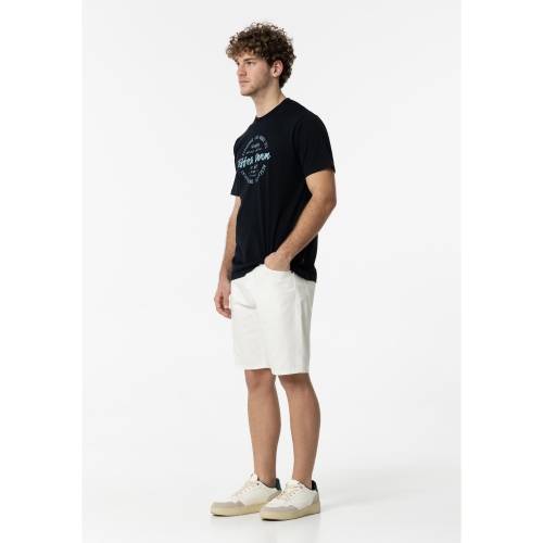 Bermuda con cinco bolsillos. Cierre frontal con botones ocultos por solapa y botón metálico.