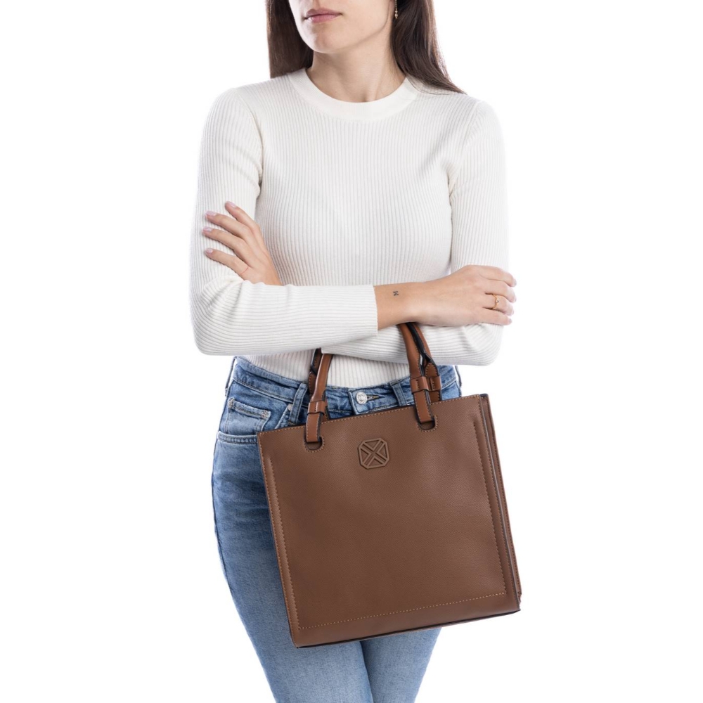 Bolso bandolera mediano de la marca Xti. Fabricado en un material que imita la piel. Asas de mano y asa bandolera ajustable para mayor comodidad. Con 5 bolsillos y cierre cremallera para mayor protección de los objetos personales.