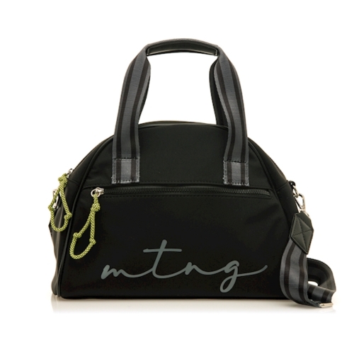 Bolso Aeron Mustang para chica, de inspiración bowling en color negro, su estilo es casual-sport. Tira extraíble con un diseño bicolor en tonos azul marino y negro para llevarlo colgado en formato de bandolera, así como una tira para llevar al hombro. Cremallera frontal para un extra de espacio. Incluye tiradores de color amarillo de estilo deportivo. Firma de la marca en la parte frontal del bolso. ¡Podrás combinarlo con tus looks favoritos!