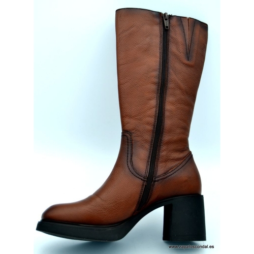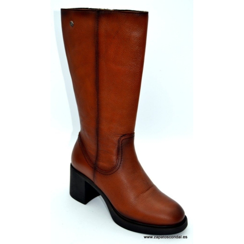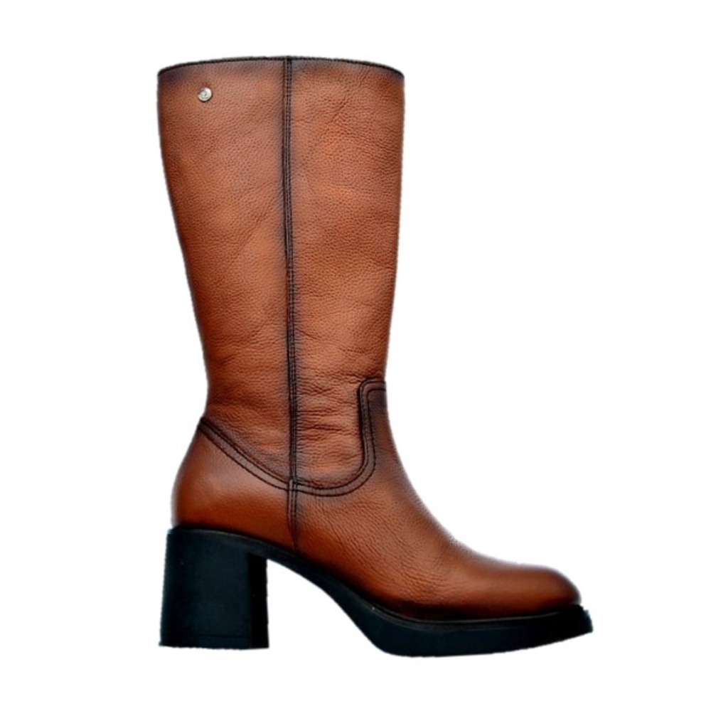 Bota alta de la marca Rivera para mujer. Fabricada en piel de gran calidad con tacón mediano. Color cuero