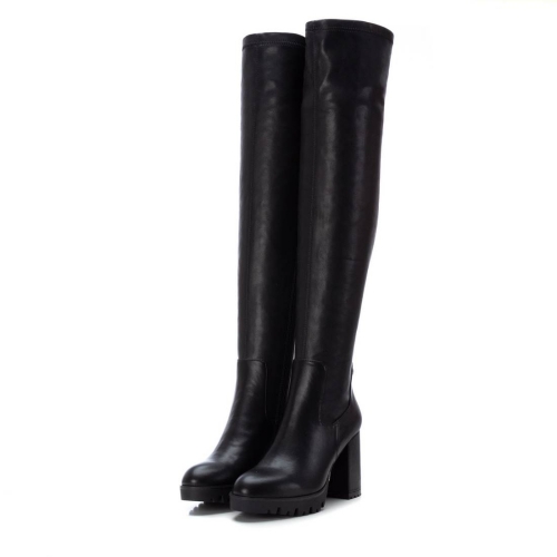 Bota de caña alta con tacón de la marca Xti para mujer. Color negro