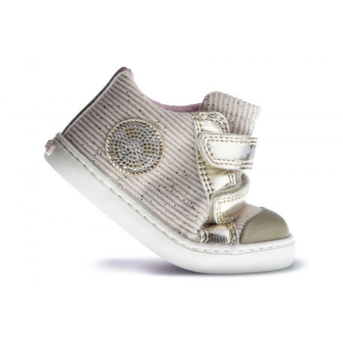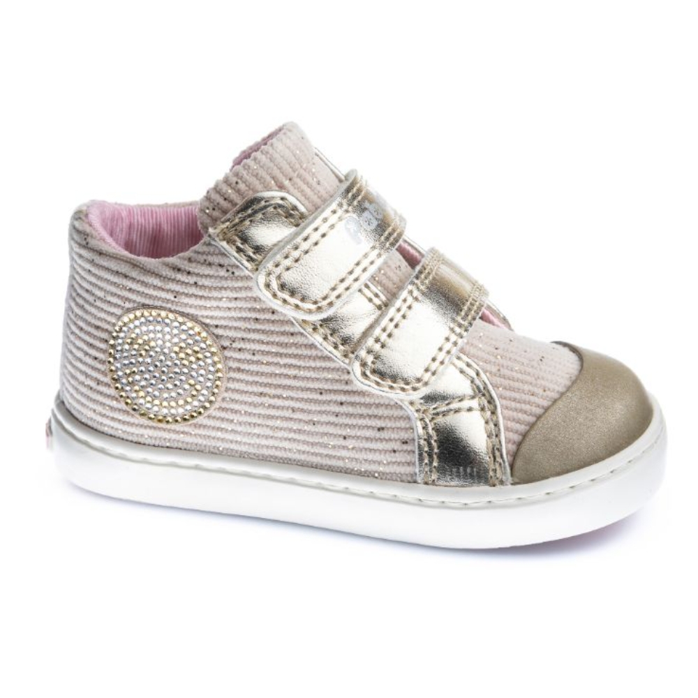 Boteta de la marca Pablosky para niña. Fabricada en material textil de gran calidad con puntera de goma, cierre con velcros en el empeine. Color beig