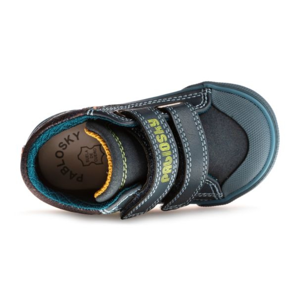 Boteta de la marca Pablosky para niño. Fabricada con materiales de gran calidad, puntera de goma y velcros en el empeine para un mayor ajuste y comodidad. Color petroleo
