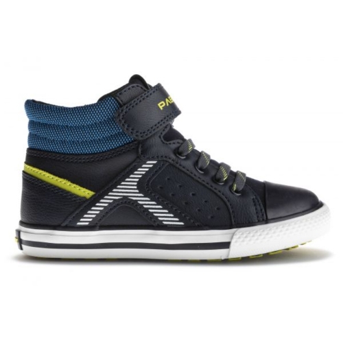 Boteta de la marca Pablosky para niño. Fabricada con materiales de primera calidad, gomas elásticas en el empeine y velcro para un mayor ajuste. Color marino