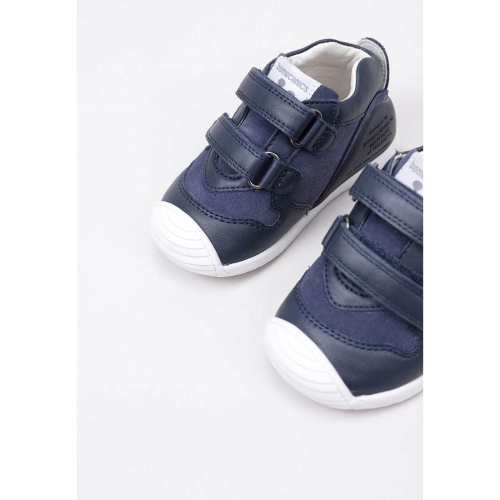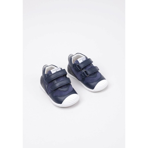 Boteta de piel con velcro de la marca Biomecanics para niño. Fabricada en españa con piel de gran calidad. Color marino