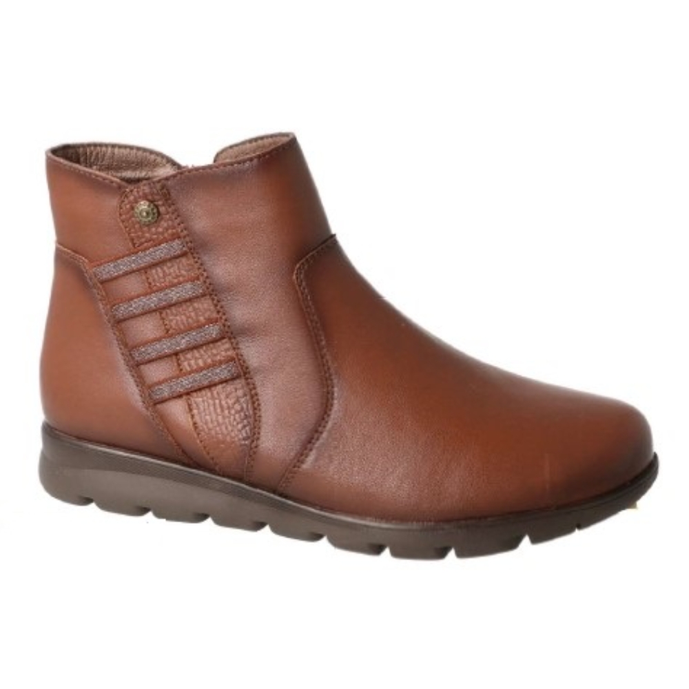 Botines Sport confort Flexpies  de mujer 1440 todo en piel, en color cuero con elásticos adaptable y cremallera para facilitar su calce y descalce, ya que se adaptan correctamente a tus pies, y sobre todo, si son esos pies sufridos que no aguantan cualquier zapato.