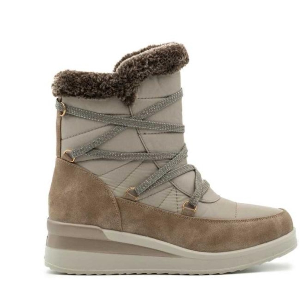 Botín para mujer, realizado en material textil combinado con sintético y ribete de pelo en la caña. Forro interior de textil y cierre mediante cremallera lateral. Plantilla extraíble de mamory foam anti-chovk, para conseguir una gran comodidad y ligereza en la pisada. Modelo pensado para un uso diario. Medidas: Cuña 5 cm. Caña 15 cm.
