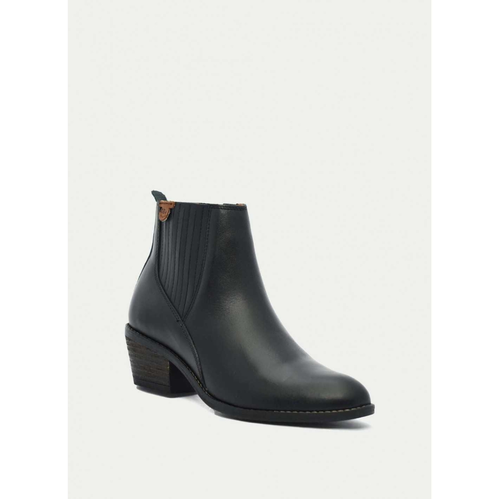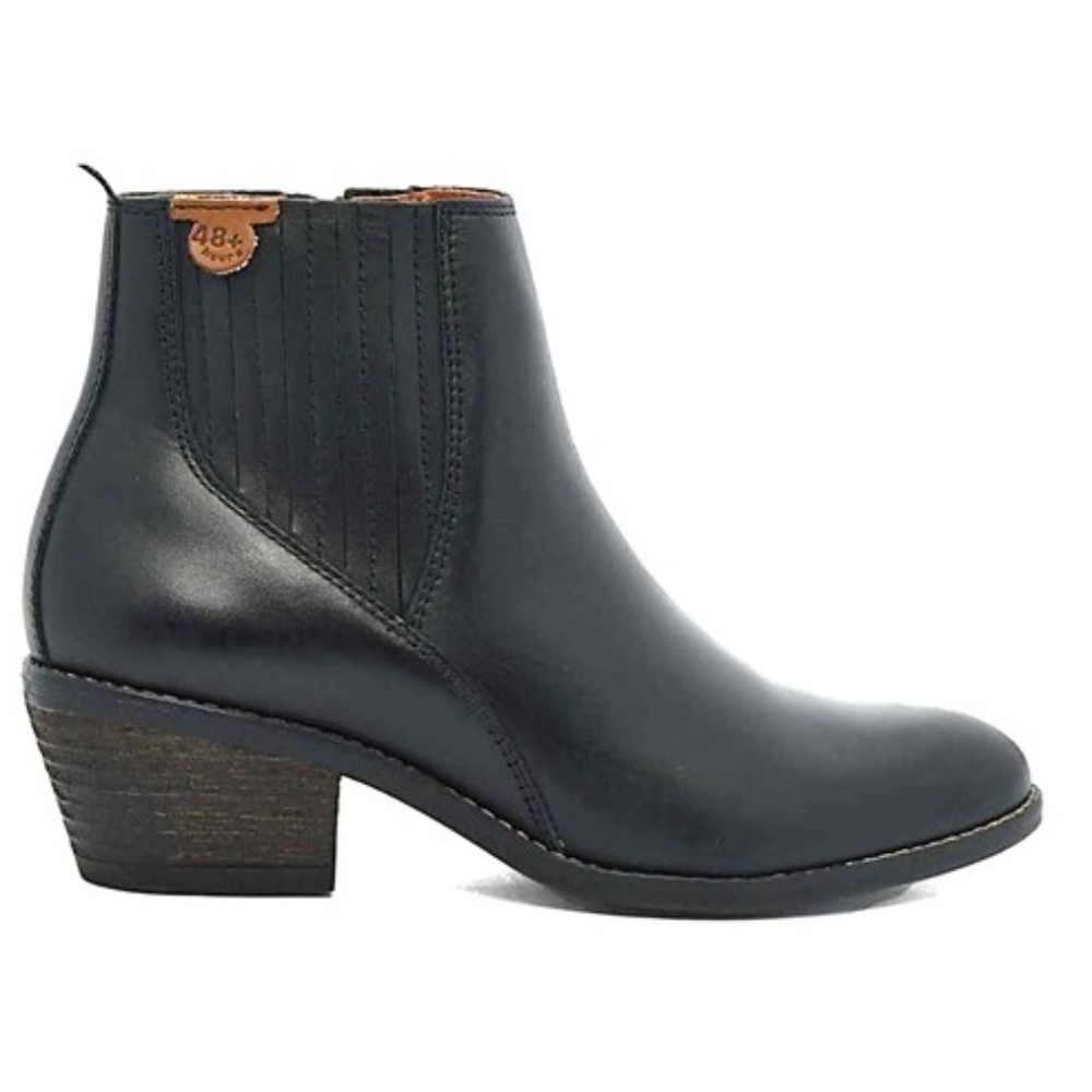 Botin de mujer fabricado en España por la marca española 48 HORAS. Piel de primera calidad. Elastico exterior y cremallera interior. Piso antideslizante. Tacón muy comodo y estable.