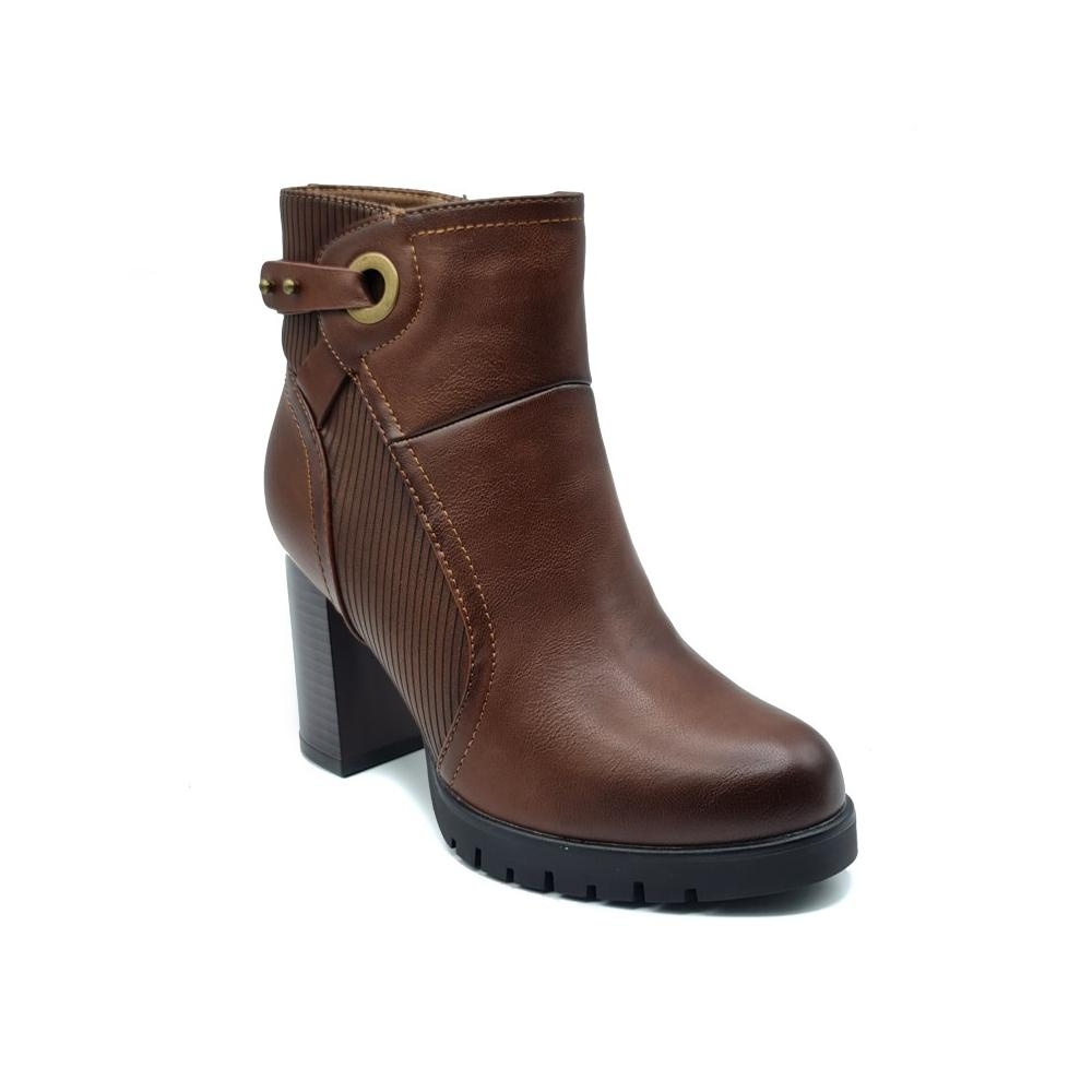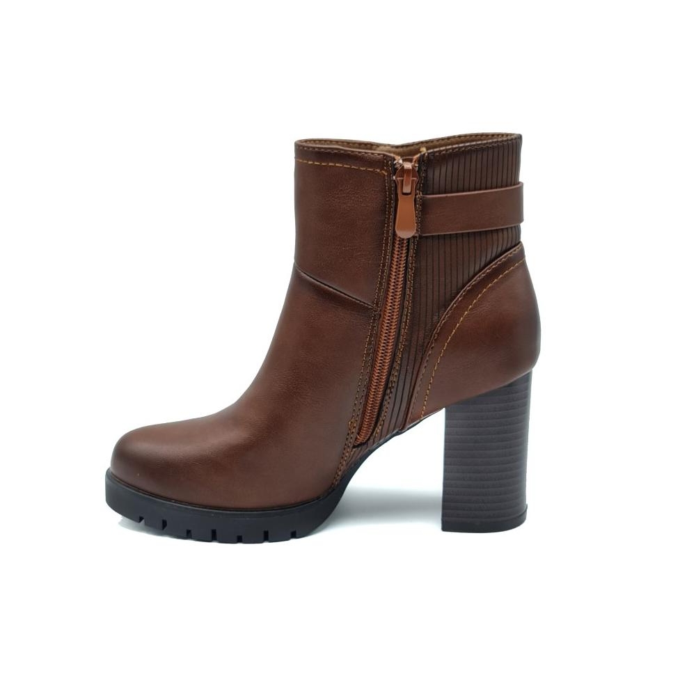 Botin con tacón alto de la marca Hispaflex para mujer. Fabricado en material de gran calidad con cremallera en el lateral. Color cuero