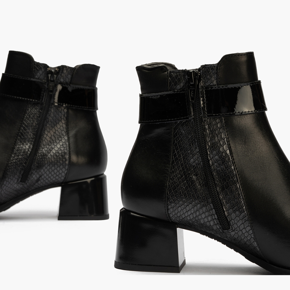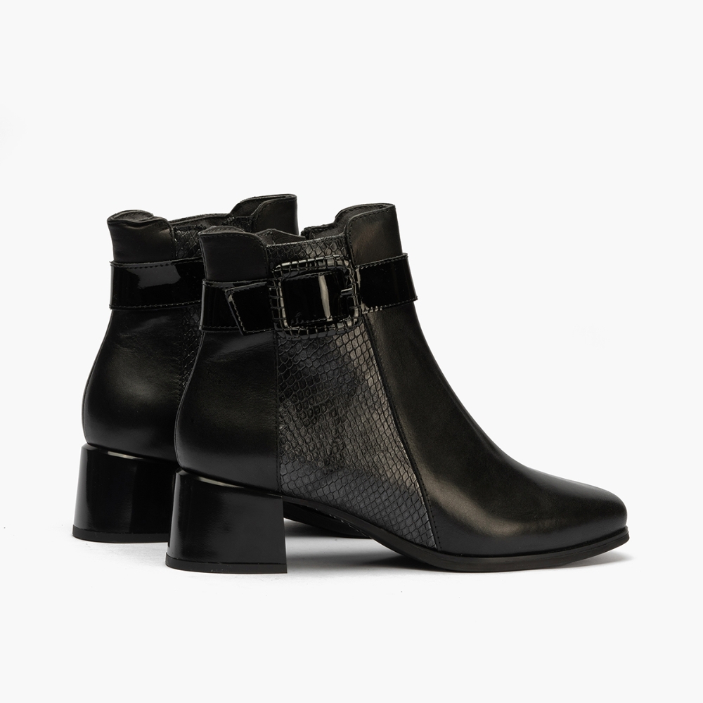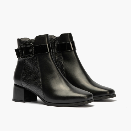 Botin con tacón bajo de la marca Pitillos para mujer. Fabricada en piel de gran calidad con cremallera lateral. Color negro