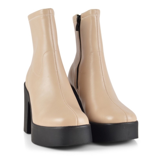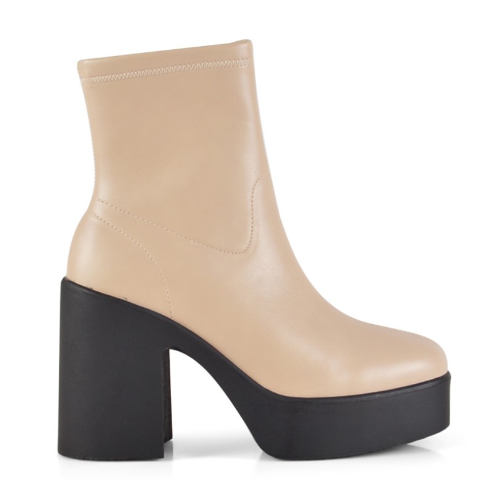 Botin con tacón ancho alto y plataforma de la marca Isteria para mujer. Fabricado en material sintético de calidad. Color crema