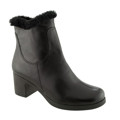 Botin de media caña con tacón medio de la marca Pitillos para mujer. Fabricado en España con piel de gran calidad y cremallera lateral. Color negro