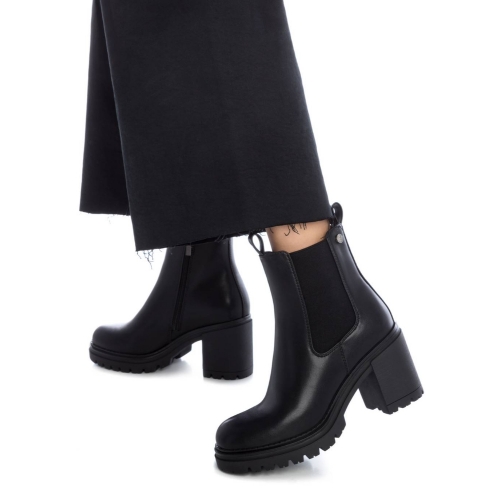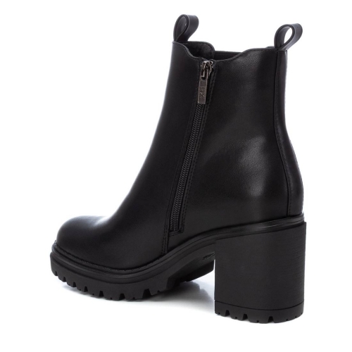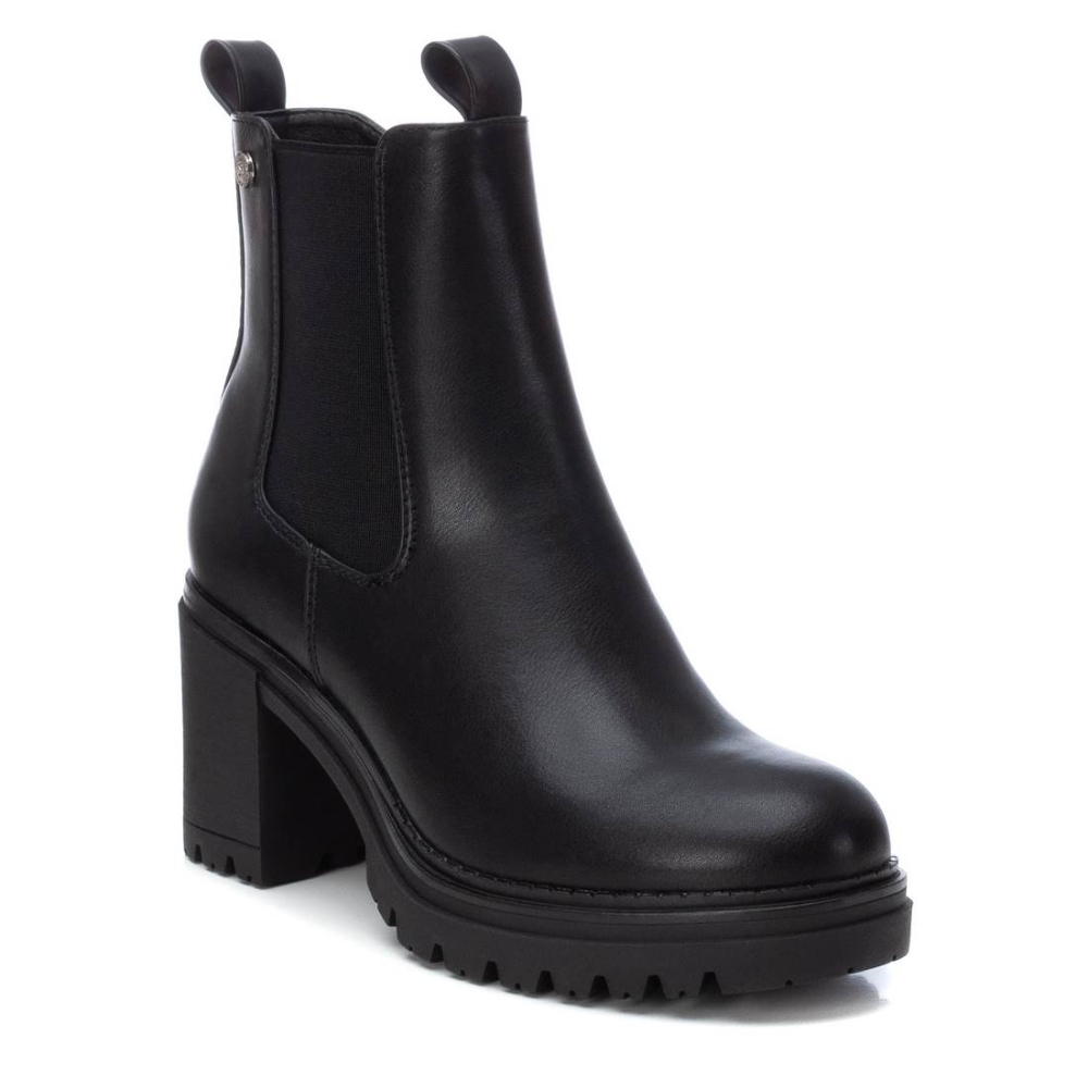 Botín de mujer, de la marca Xti. Fabricado en un material que imita la piel. Cierre lateral mediante cremallera y lateral elástico para mayor ajuste y comodidad. Suela gruesa, antideslizante y tacón de 7?cm. Este modelo ha obtenido el certificado vegano por la organización mundial PETA (Organización de los derechos de los animales).