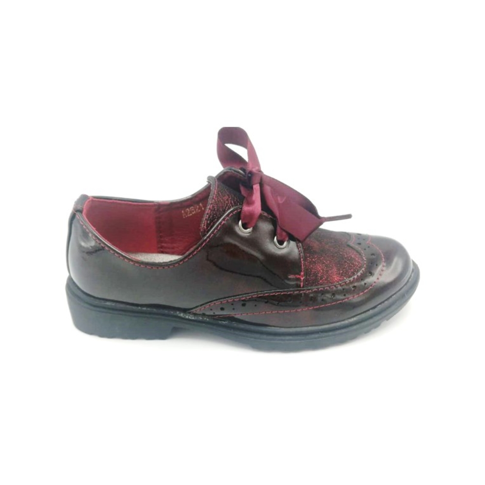 Zapato para niña de la marca Bubble, fabricado en material sintetico brillo con cordón