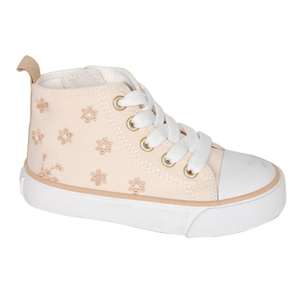 Bota estilo deportiva con cordón y puntera de goma para niña. Fabricada en material textil transpirable con cremallera interior para un mayor ajuste y comodidad. Color beig