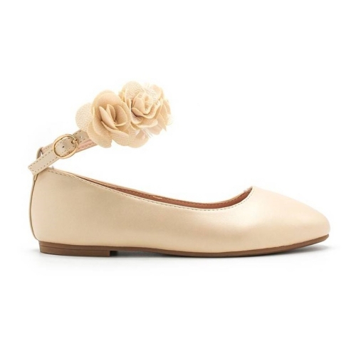 Merceditas de la marca Bubble para niña. Fabricada con pulsera atada al tobillo con flores. Color beig