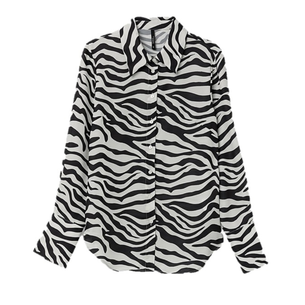 Camisa con cuello solapa y manga larga. Cierre frontal con botones.