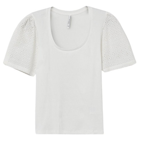 Camiseta de cuello redondo y manga corta bordado inglés.