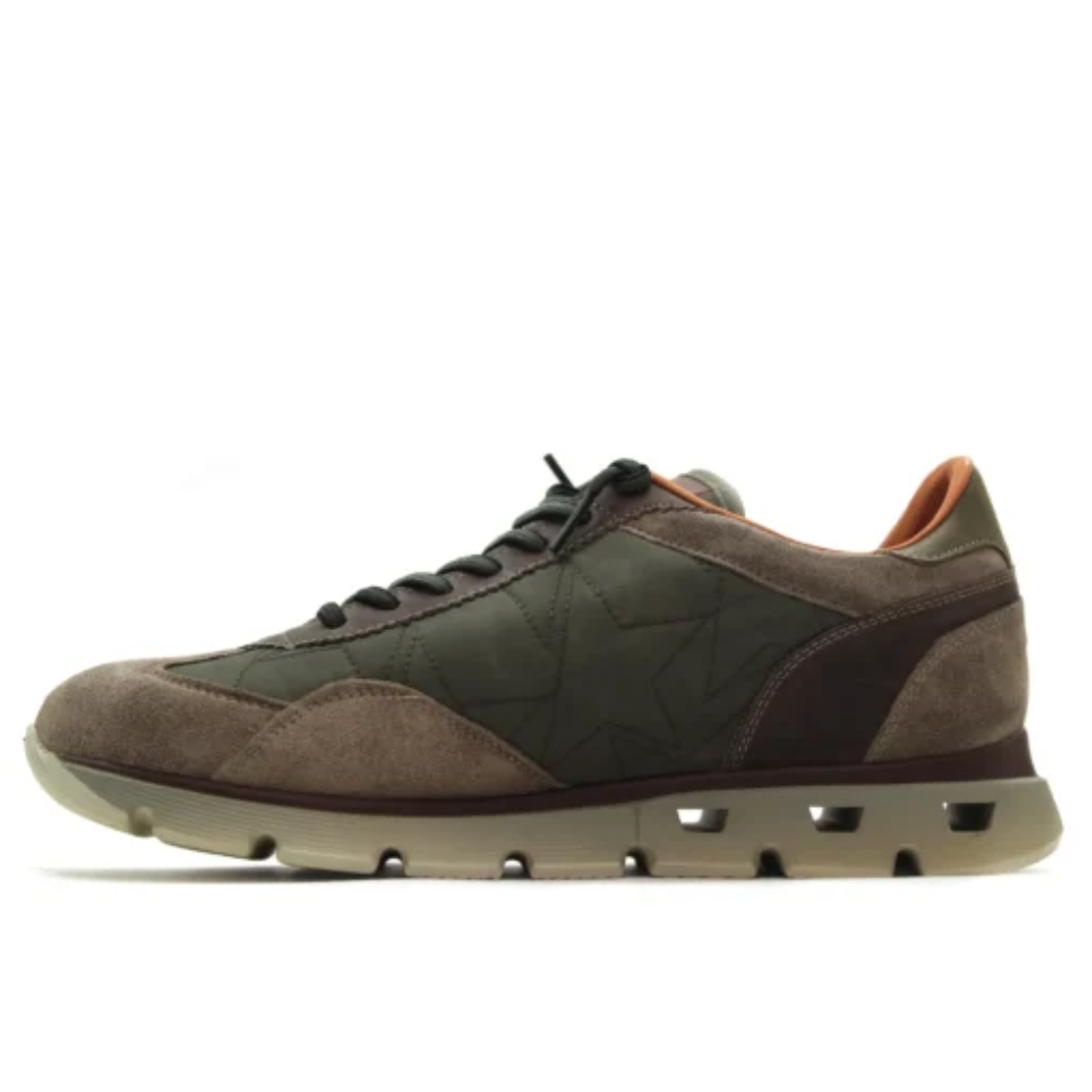 Zapatos casual estilo deportivos, confeccionados en combinación de material textil y paneles de piel de primera calidad, con cierre de cordones elásticos, forro interior textil y piel y suela alta de goma.