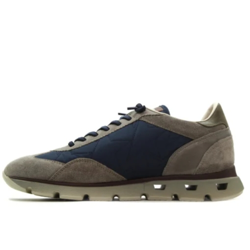 Zapatos casual estilo deportivos, confeccionados en combinación de material textil y paneles de piel de primera calidad, con cierre de cordones elásticos, forro interior textil y piel y suela alta de goma.