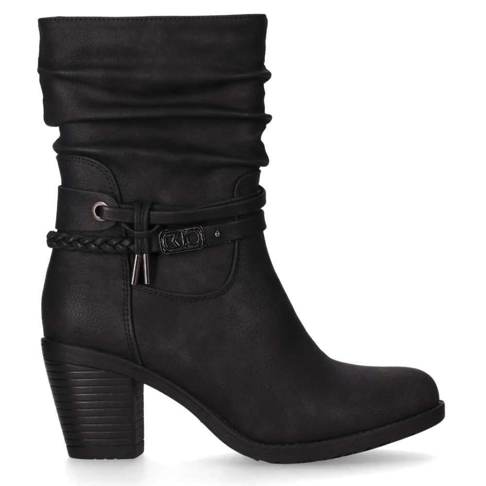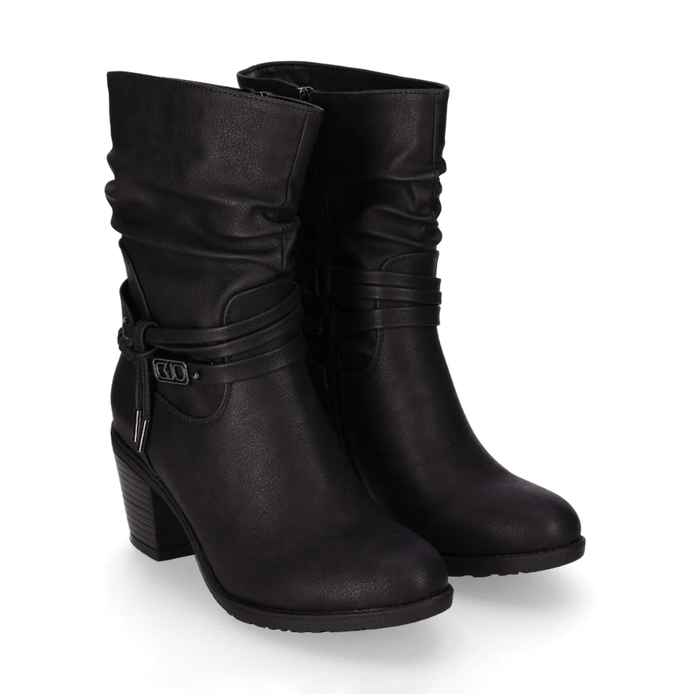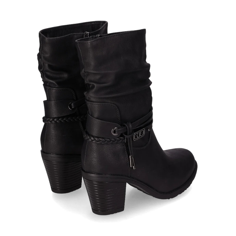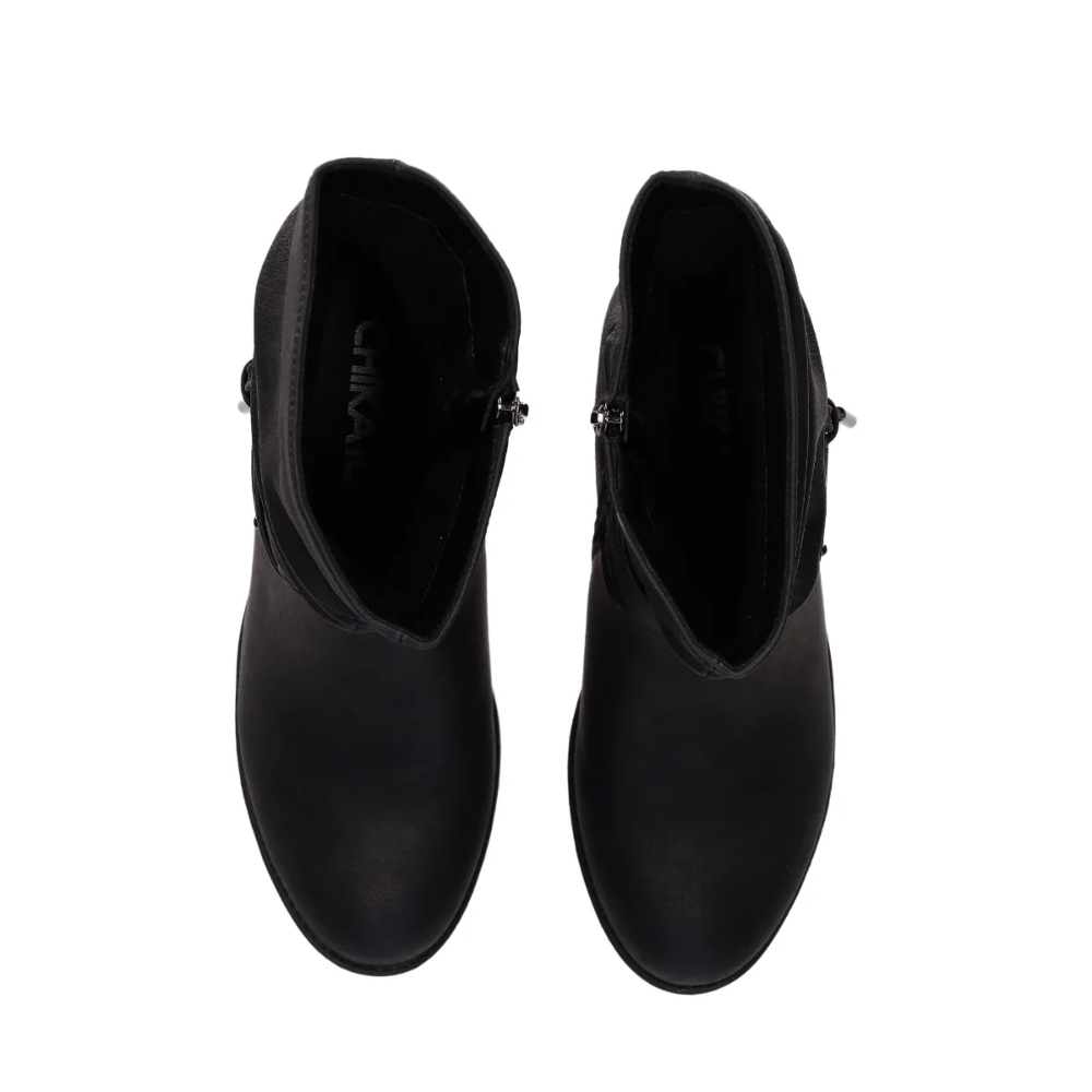 Botín de tacón medio con cremallera. Diseño clásico de botín de caña media, cremallera lateral, detalles decorativos. Diseño elegante y cómodo para ocasiones casuales o semi-formales. Ideal para destacar en cualquier outfit.
