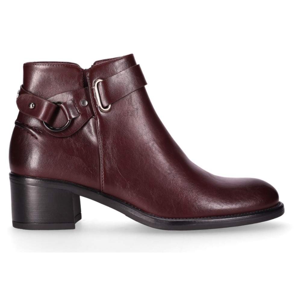 Botin de tacón medio con hebilla decorativa. Con un elegante acabado en piel vegana suave y detalle de hebilla decorativa en su caña. Su cierre de cremallera lateral y su diseño sofisticado las hace perfectas para ocasiones casuales y looks formales. ¡Combina elegancia y confort en cada paso!