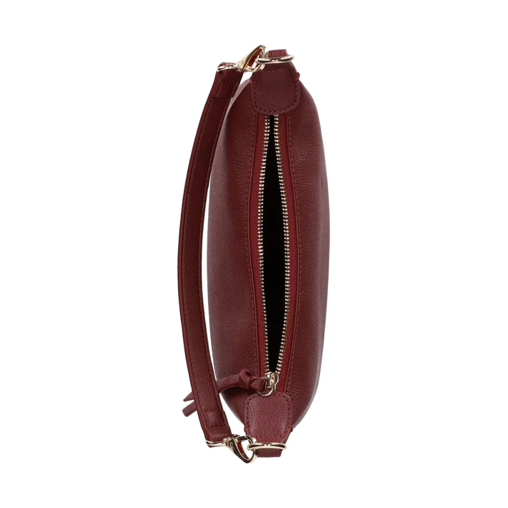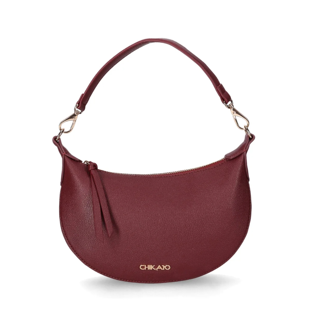 Bolso con Diseño Elegante y Curvo: Este bolso presenta una forma curva con una sola asa unida por herrajes metálicos. Su diseño minimalista incluye un detalle decorativo en la parte frontal inferior. Ideal para complementar un look moderno y sofisticado.