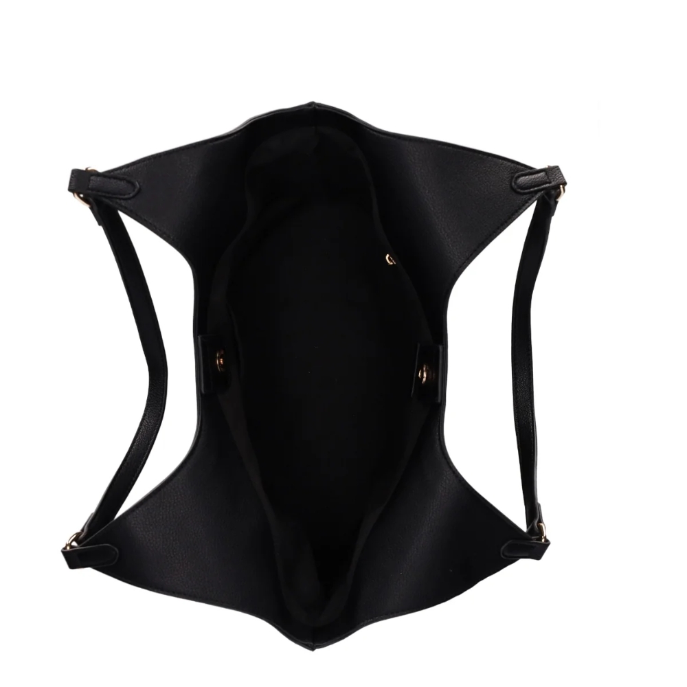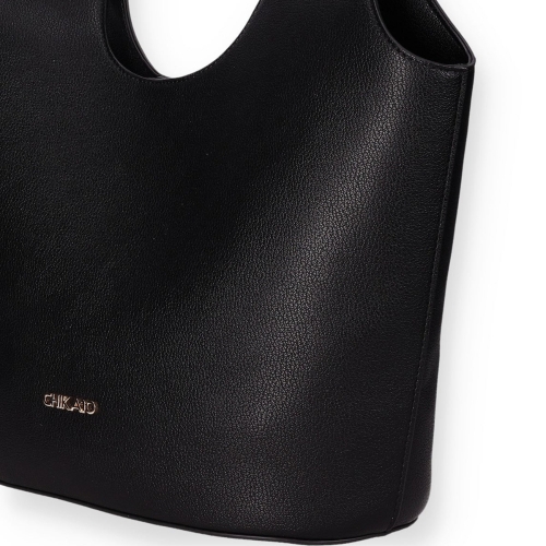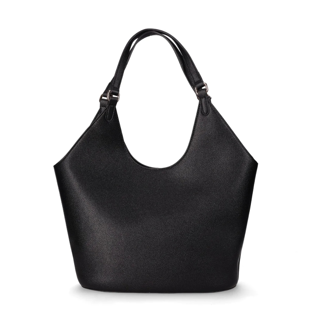 Bolso con Diseño Elegante y Curvo: Este bolso presenta una forma curva con una sola asa unida por herrajes metálicos. Su diseño minimalista incluye un detalle decorativo en la parte frontal inferior. Ideal para complementar un look moderno y sofisticado.