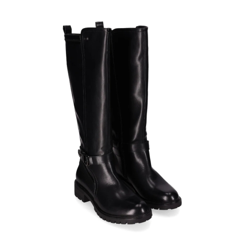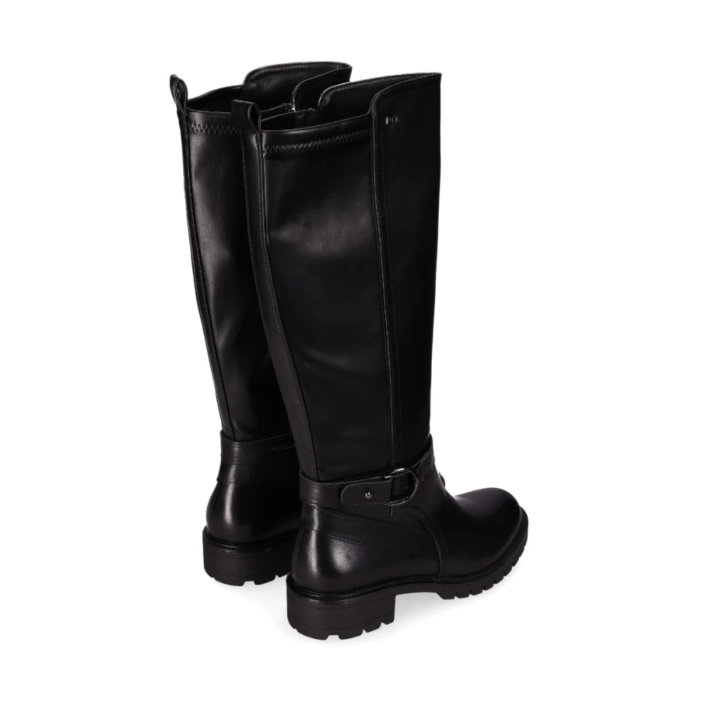 Bota alta con hebilla y suela dentada. Esta elegante bota alta hasta la rodilla, presenta una hebilla alrededor del tobillo a modo de pulsera decorativa. Con suela dentada y tacón bajo ofrecen comodidad y tracción. El diseño atemporal y versátil la hace perfecta para el día a día. ¡Camina con estilo!