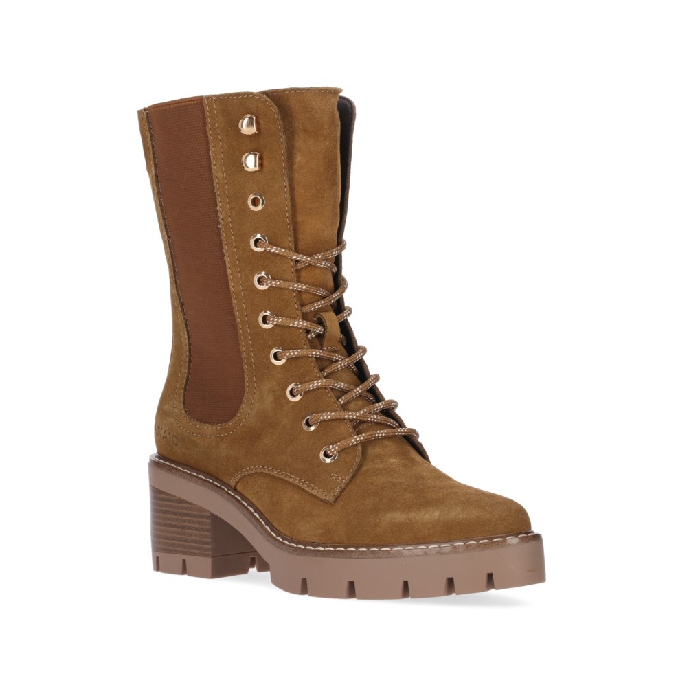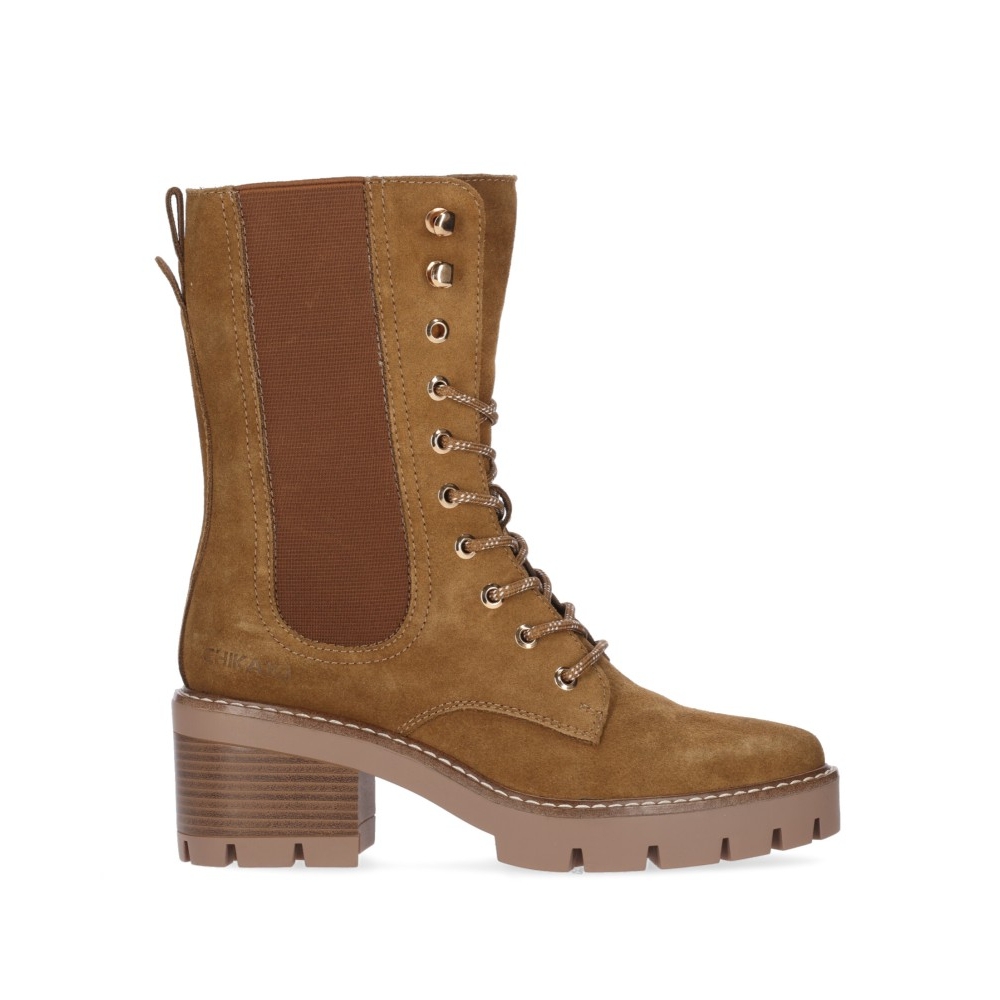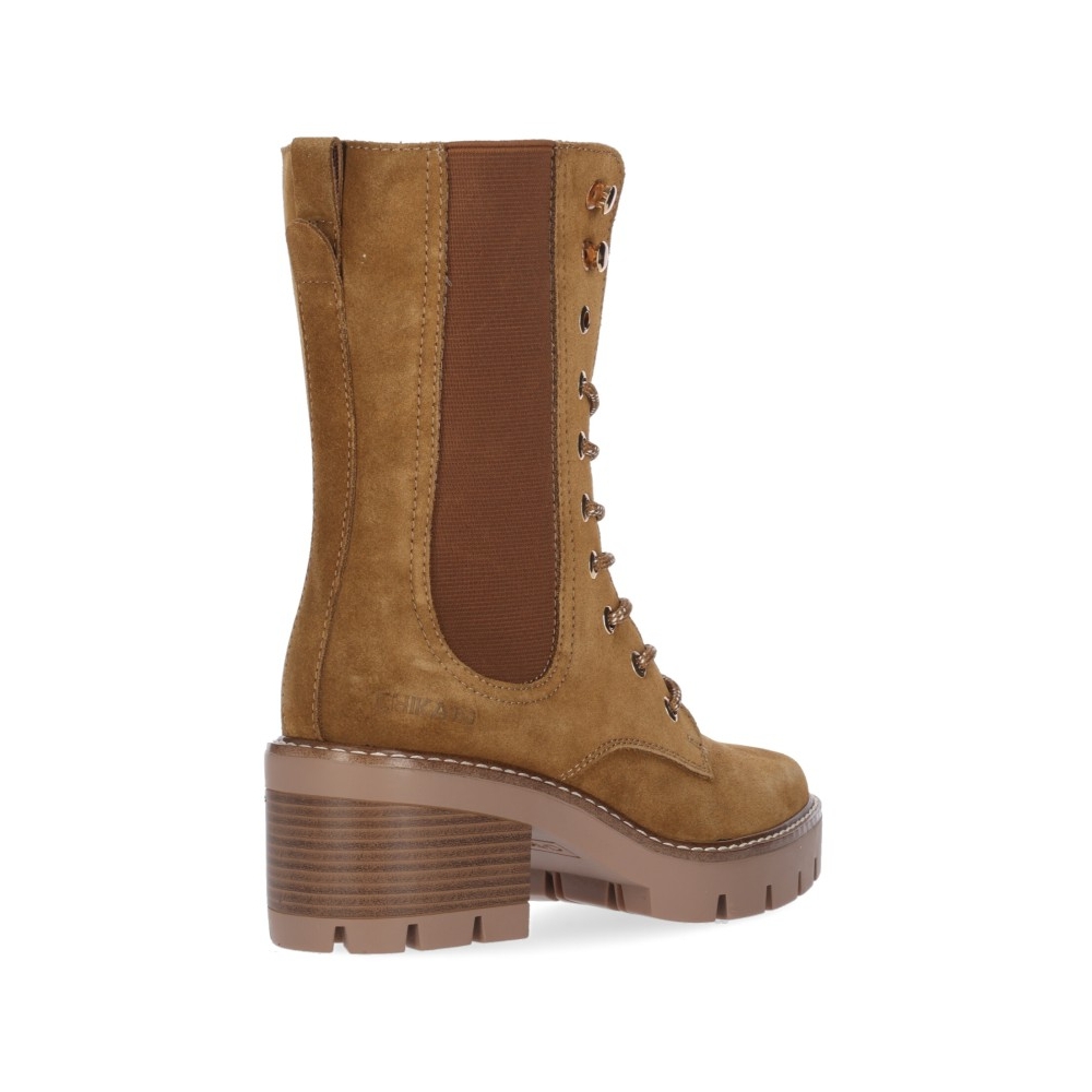 Bota con cordón y tacón bajo de la marca Chika10 para mujer. Color cuero