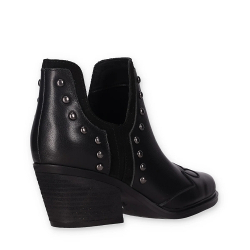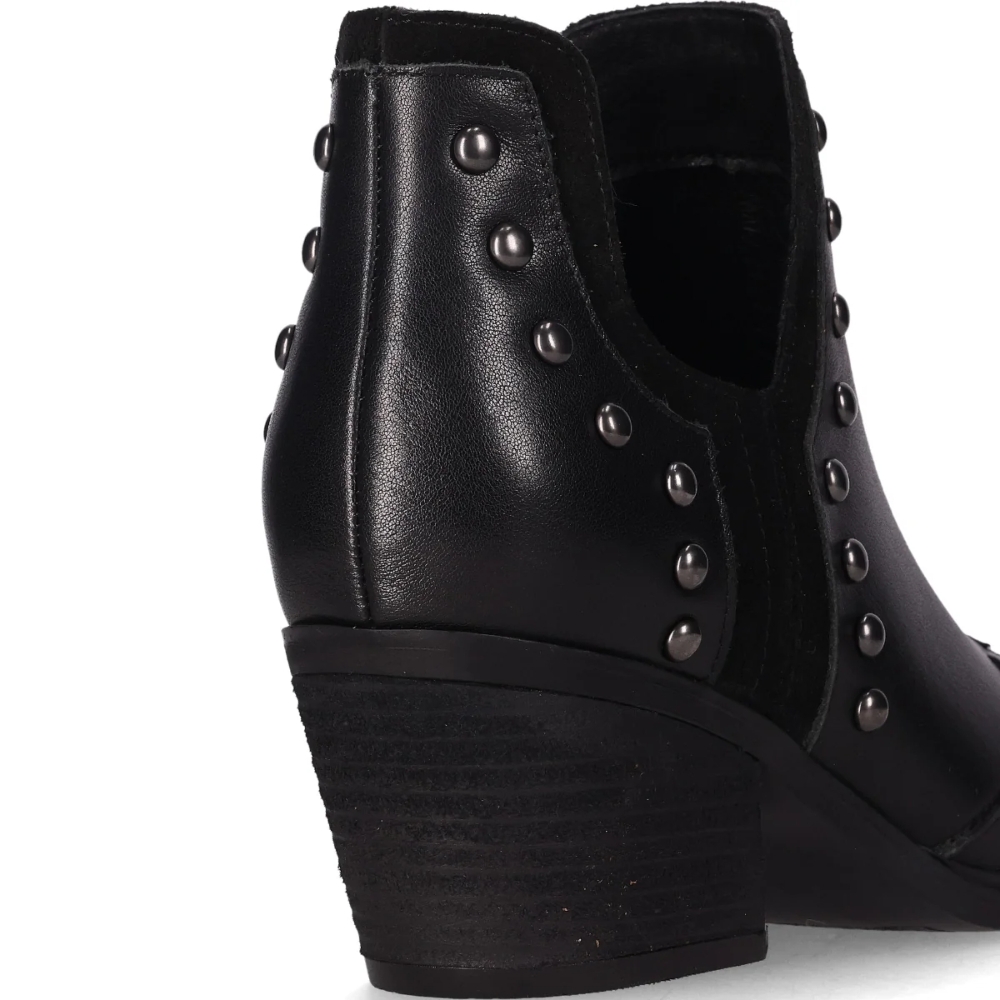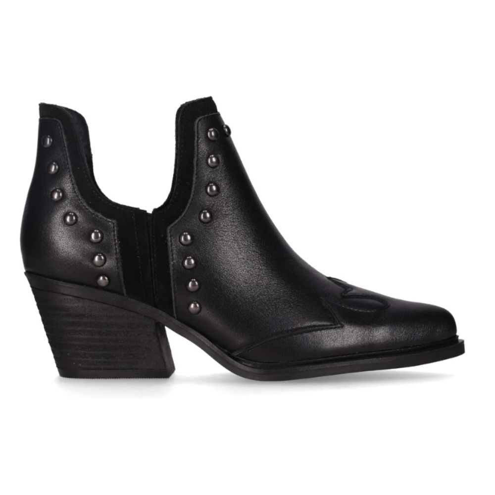 Botín de Gamuza con Tacón Bajo y Detalles Metálicos: Botín estilo campero con tacón bajo y detalles metálicos decorativos en los laterales. Su diseño moderno y estilizado lo hace perfecto para los entusiastas de la moda que buscan opciones de calzado a la última, ¡Marca tendencia con cada paso!