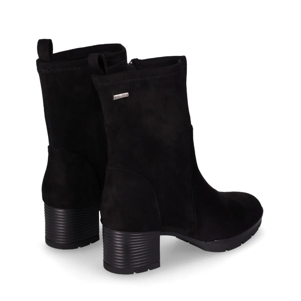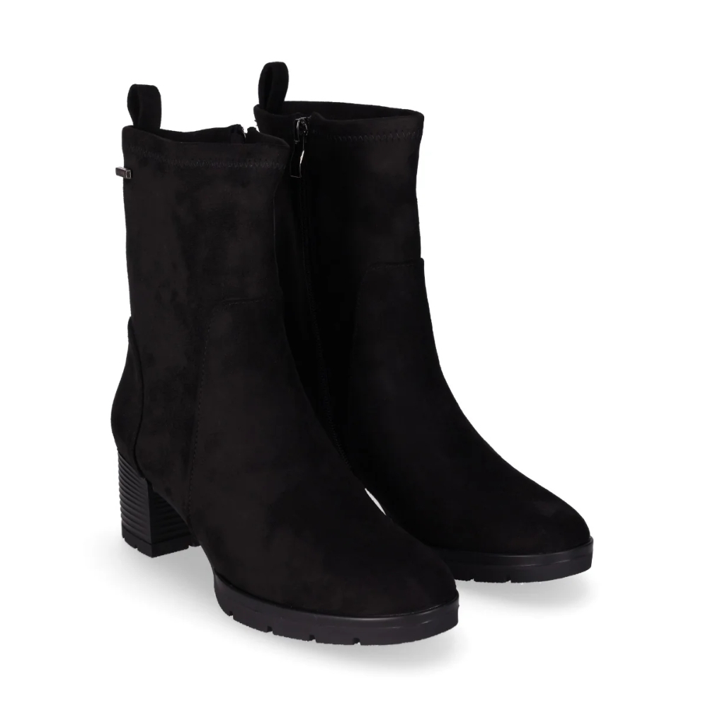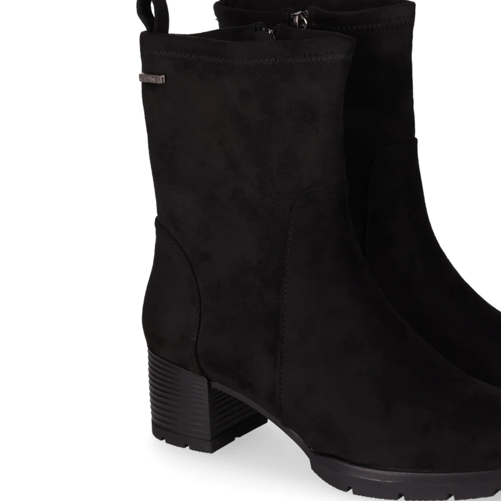 Botín de tacón estilo calcetín. Con una tacón grueso, el botín esta diseñado en tela elástica simulando un calcetín pegado a la piel. Incorpora una membrana protectora que garantiza mayor comodidad y protección durante todo el día. Con su caña media ajustada y suela confort, ¡será el básico para cualquier ocasión!