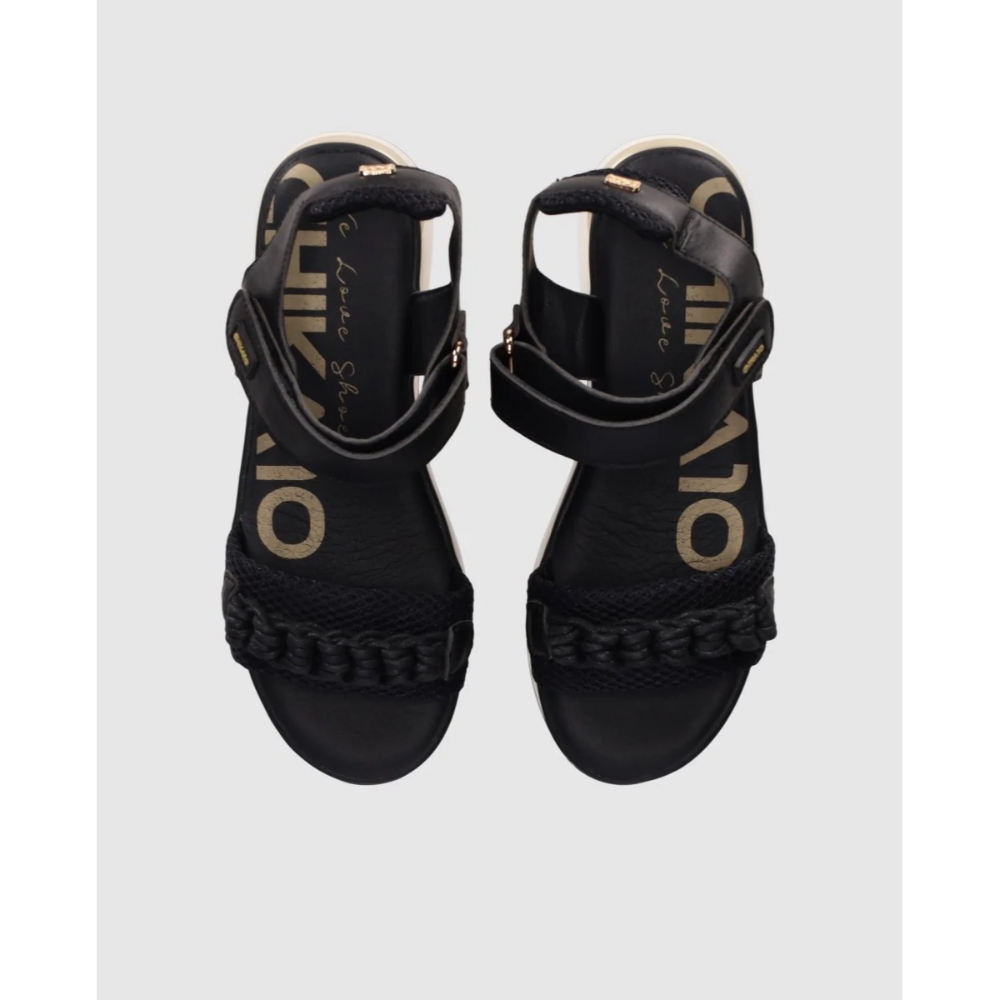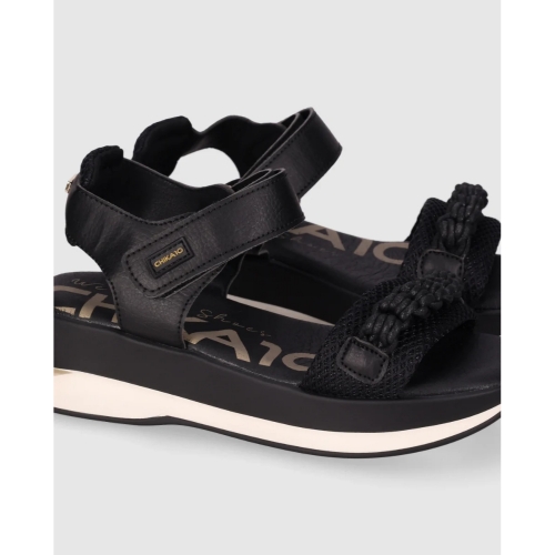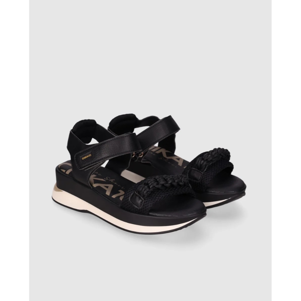 Sandalias de plataforma con mezcla de piel efecto grano y tejido transpirable. Incorporan detalle trenzado en la tira delantera y cierre de velcro para un ajuste sencillo. Ideales para elevar tus looks con confort y estilo casual.