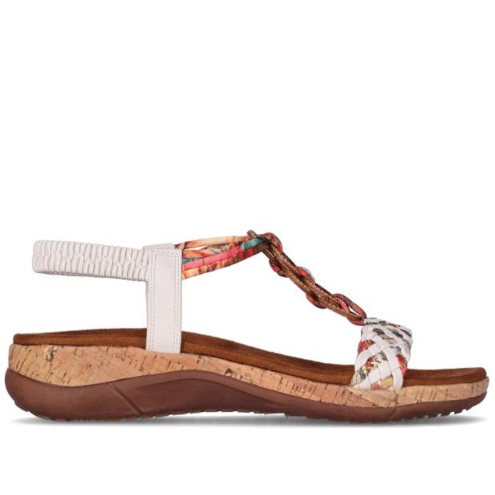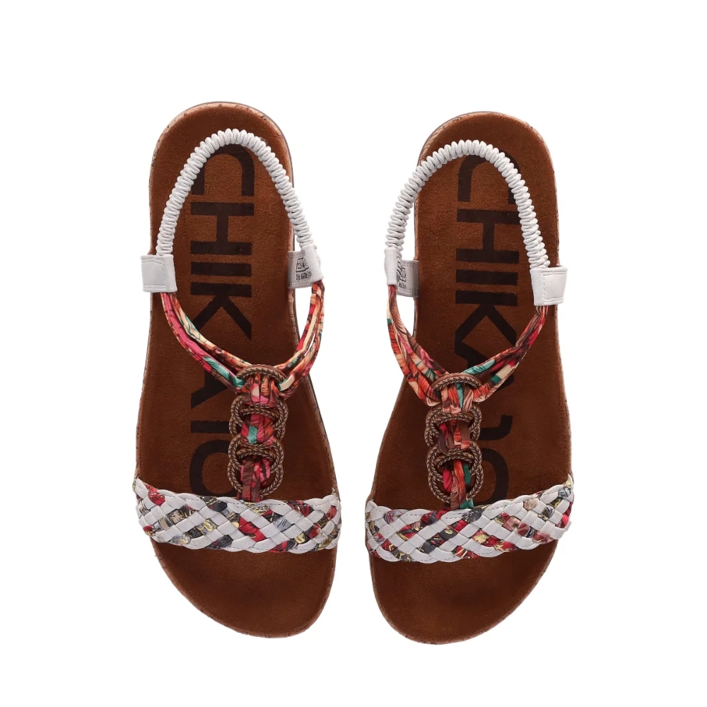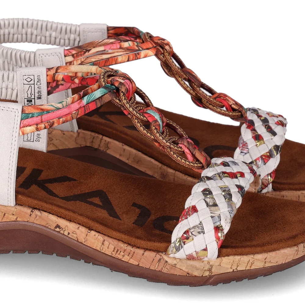 Sandalias de cuña de mujer. Diseño multicolor con una cómoda plantilla de corcho y un diseño de tiras coloridas. Con un trenzado decorativo combinado con abalorios, estas sandalias son perfectas para cualquier día soleado. ¡Camina con estilo y frescura!
