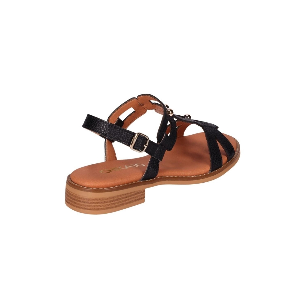 Sandalia plana de la marca Chika10 para mujer. Fabricada en materiales de gran calidad con detalles en el empeine. Color negro