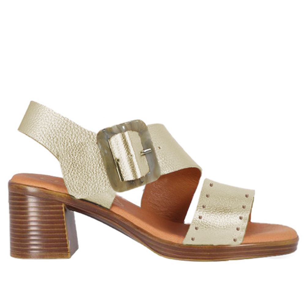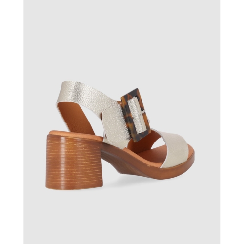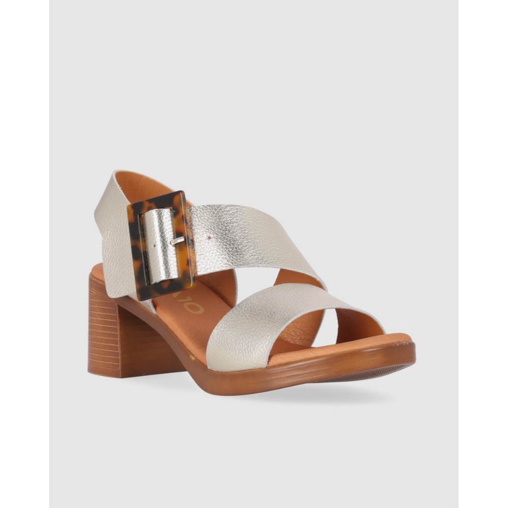 Sandalia de tacón de mujer. Con múltiples tiras cruzadas y maxi hebilla en la parte frontal, esta sandalia combina un tacón de altura media efecto madera con un agarre frontal al tobillo. ¡Camina con confianza y estilo en cada ocasión!