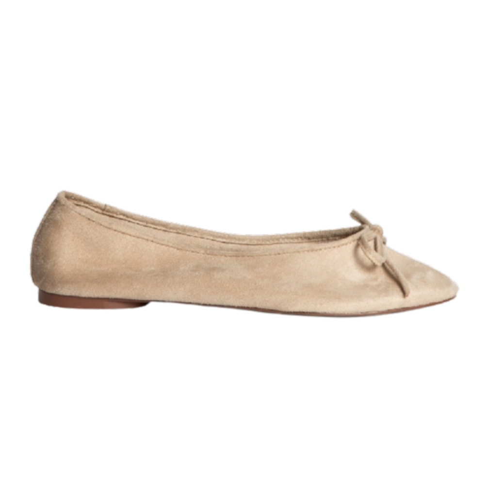 Bailarina plana. Punta rendonda, detalle de lazo en la parte delantera.Altura de la suela 1 cm.