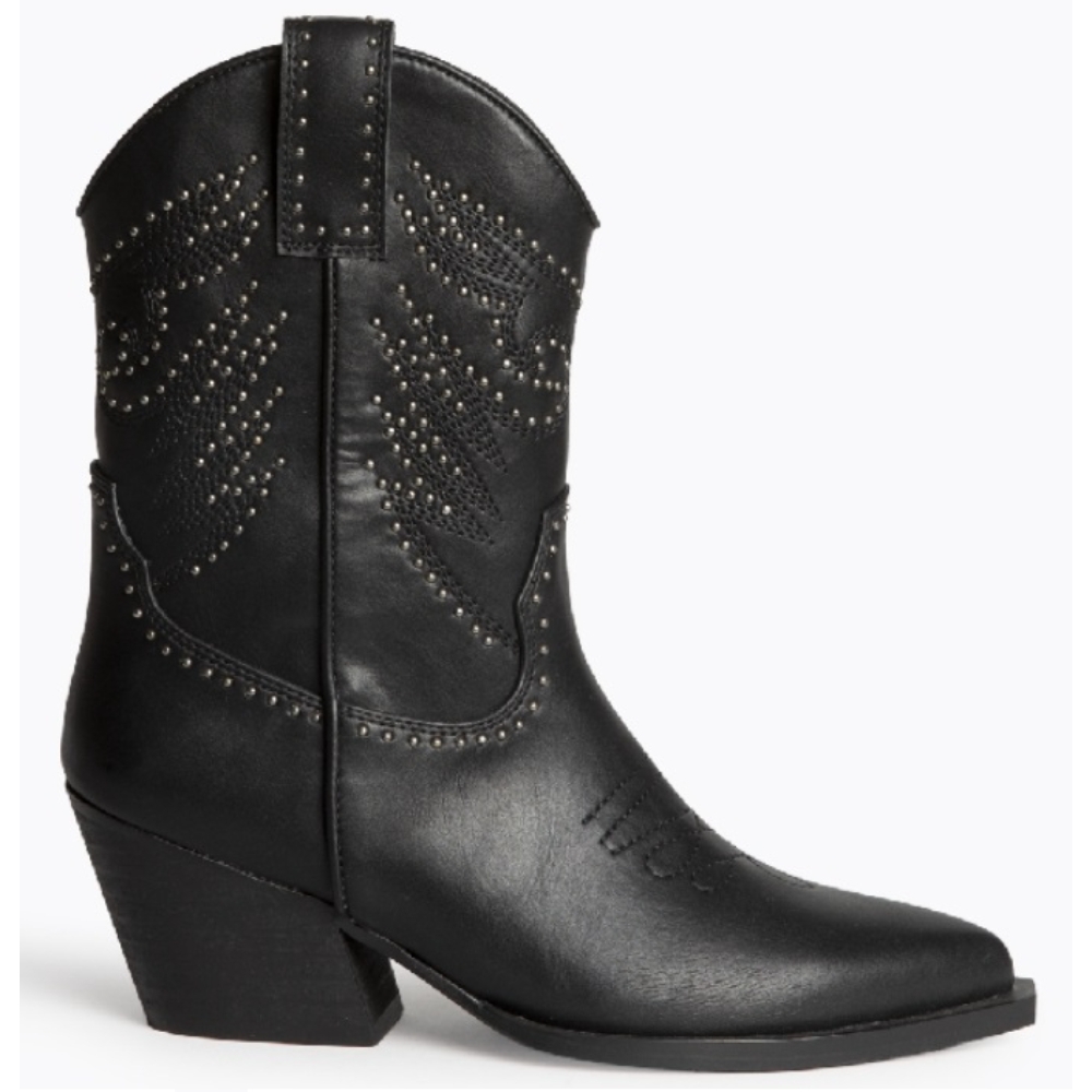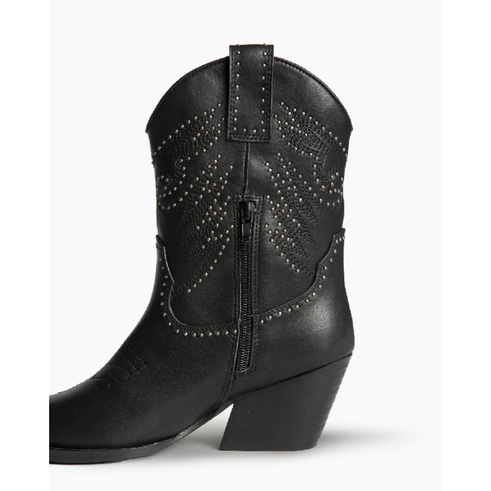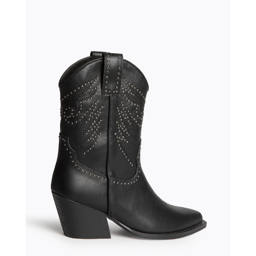 Botin estilo cowboy con detalles en tachas. Color negro