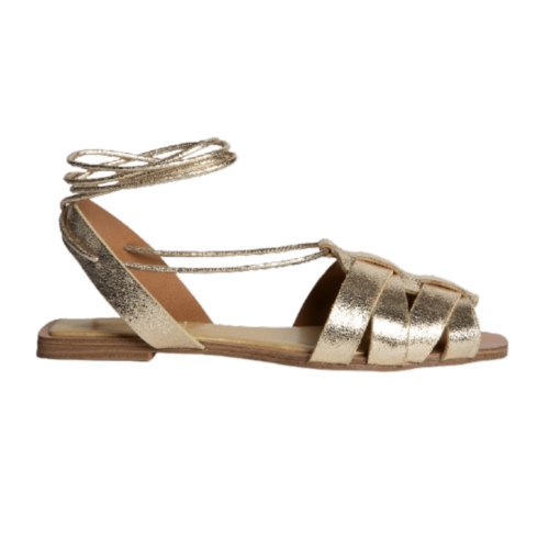 Sandalia plana estilo romana de la marca Corina para mujer. Fabricada en material sintético con cordón. Color negro