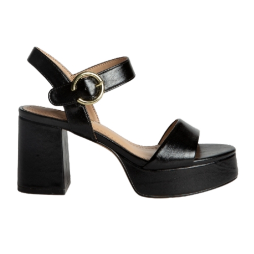 Sandalia de tacón alto. Detalle de flores en la parte delantera. Tacón ancho. Acabado en punta redonda. Cierre mediante hebilla en la tira del tobillo.Altura del tacón 8 cm.