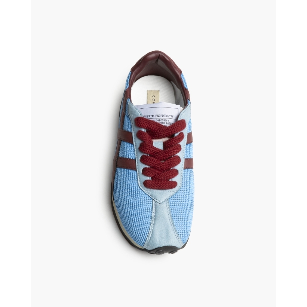 Zapatilla deportiva estilo retro en combinación de materiales. Cierre mediante cordones de seis pasadas.Altura de la suela 3 cm.