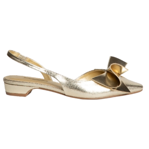 Bailarina destalonada de tacón bajo. Cierre mediante tira en el talón con elástico en la parte interior. Adorno de lazo en la parte delantera. Corte en charol.Altura del tacón 3 cm.