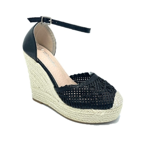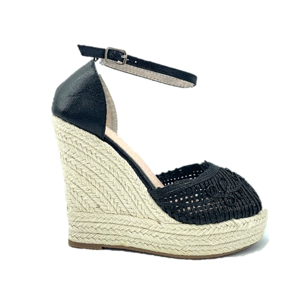 Cuña alta de esparto con plataforma para mujer. Color negro