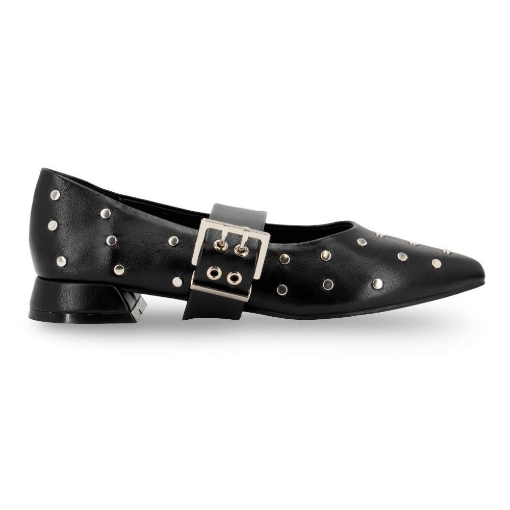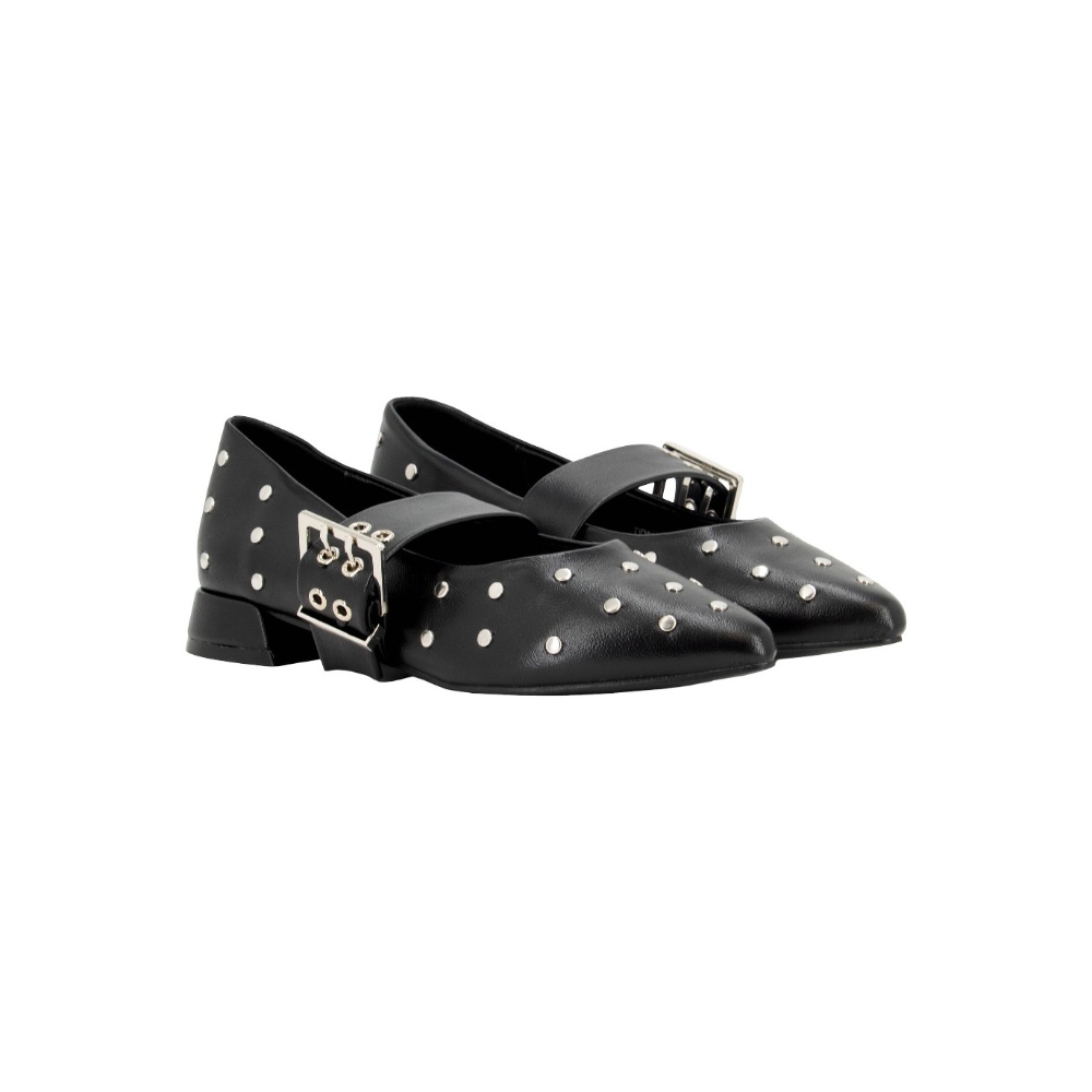 Merceditas con hebilla y tachas de la marca D'angela para mujer. Color negro